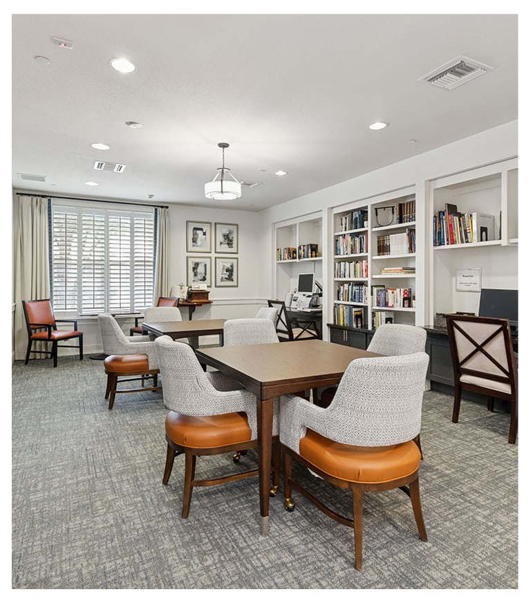 Enjoy chef-prepared meals brought to your table by professional servers. Experience organized events and activities both on-site and around Las Colinas. Stay fit in our gym, enjoy nearby walking trails, or participate in a water aerobics class in our indoor therapy pool.